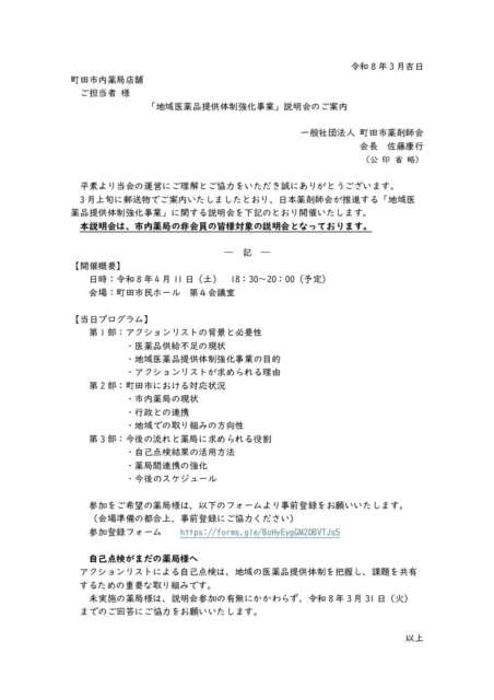 第145回 町田市薬剤師会 学術講演会のお知らせ